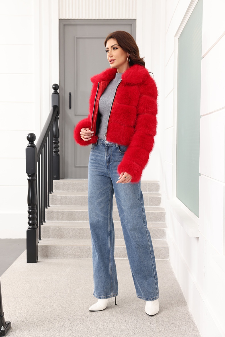 Faux Fox-fur Patchwork Thickened Warm Fur Coat