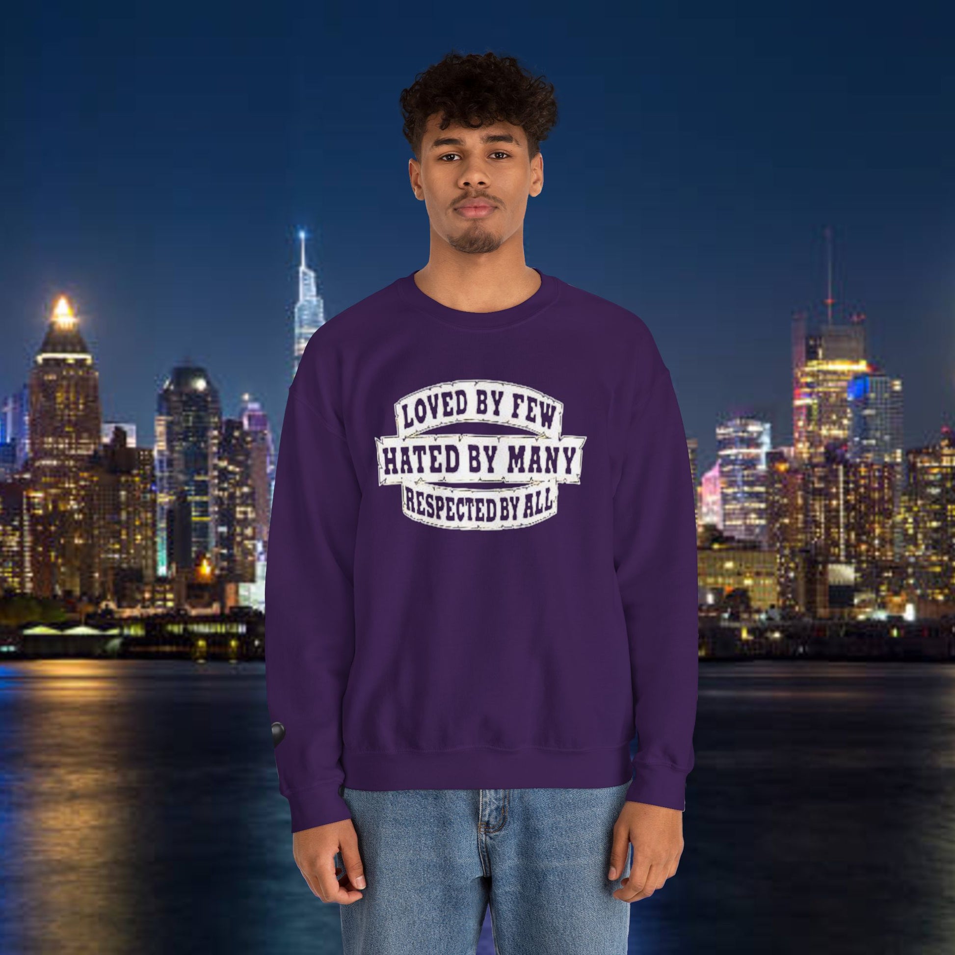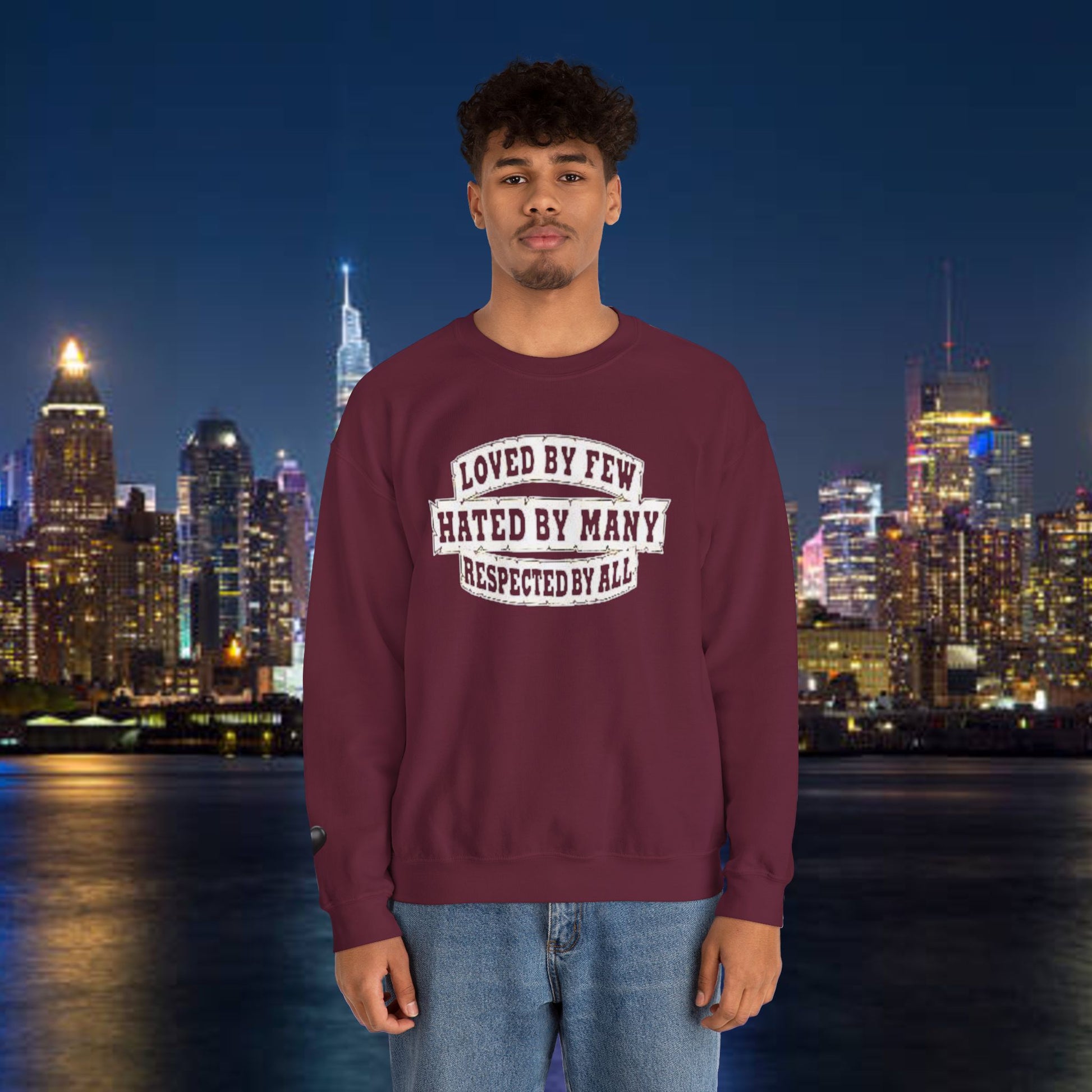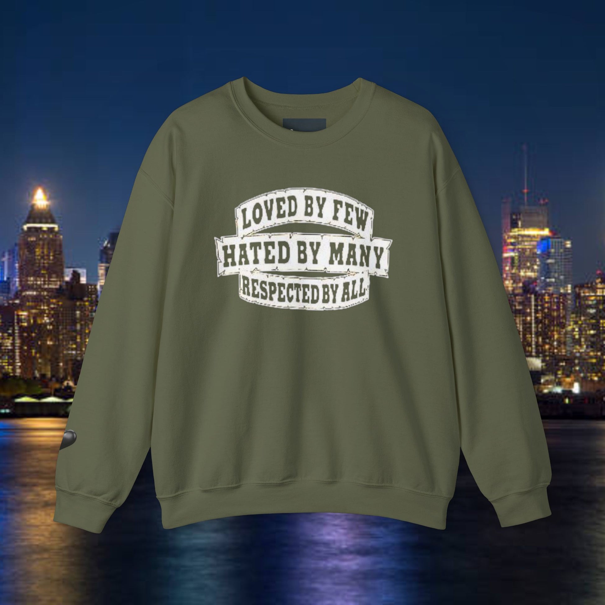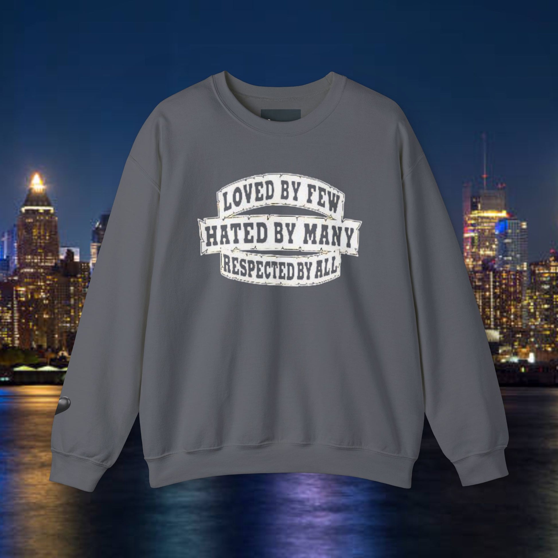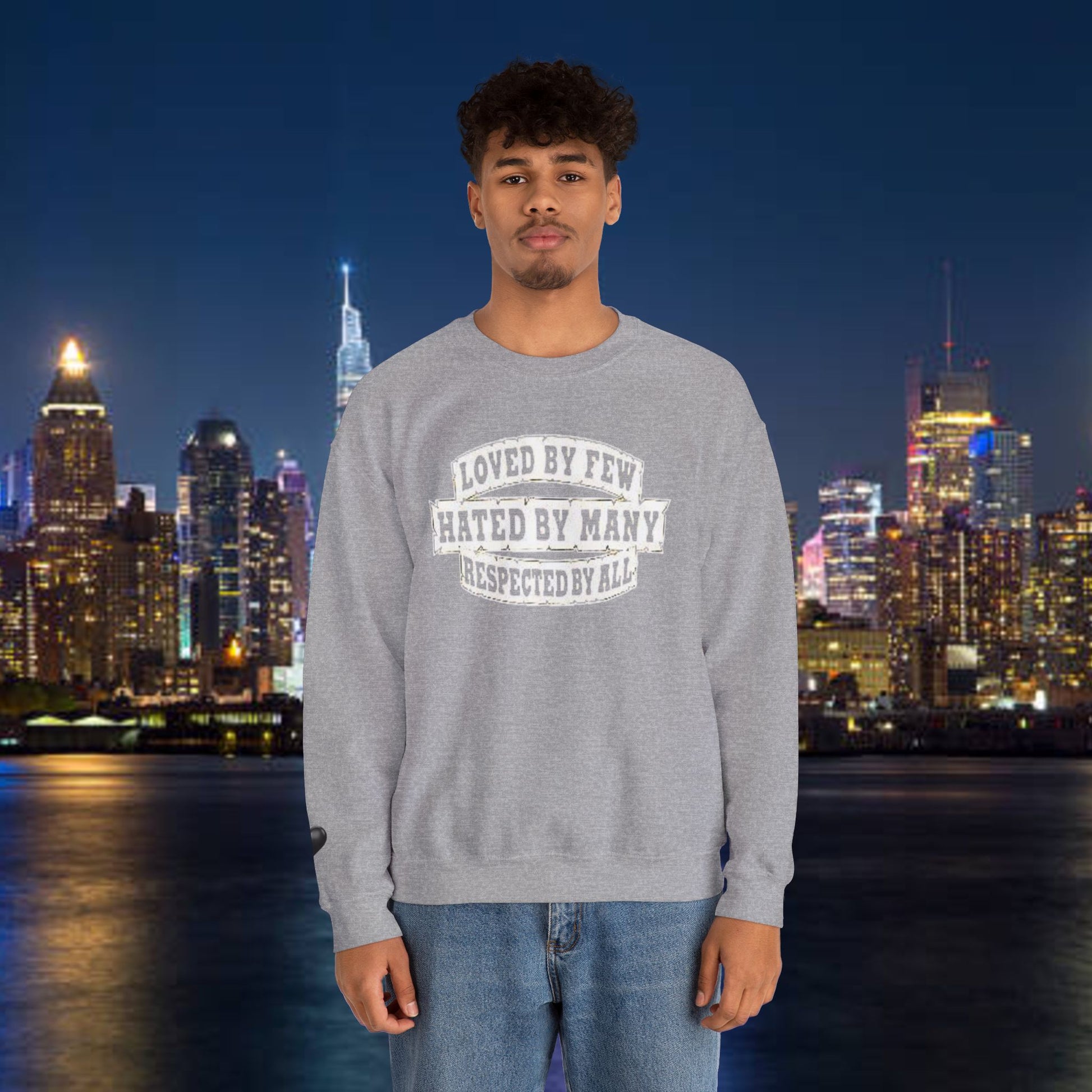 Designed for adults who value comfort and a classic aesthetic, this sweatshirt features a timeless crew neckline and a classic fit that complements all body types. Whether you're celebrating a cozy winter holiday, a casual birthday bash, or just unwinding on a chilly evening, this crewneck has got you covered. Its unique message, "Loved by Few, Hated by Many, Respected by All," adds a powerful statement to your everyday look, making it a fantastic gift for friends or family who embrace individuality.