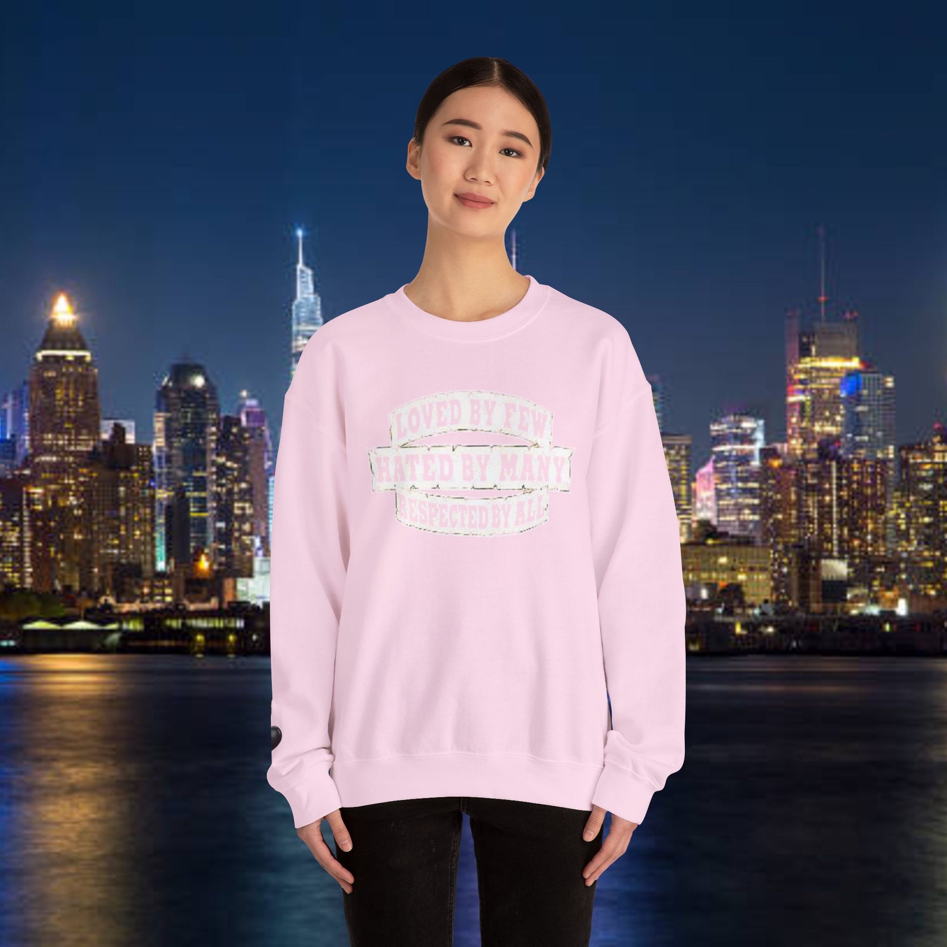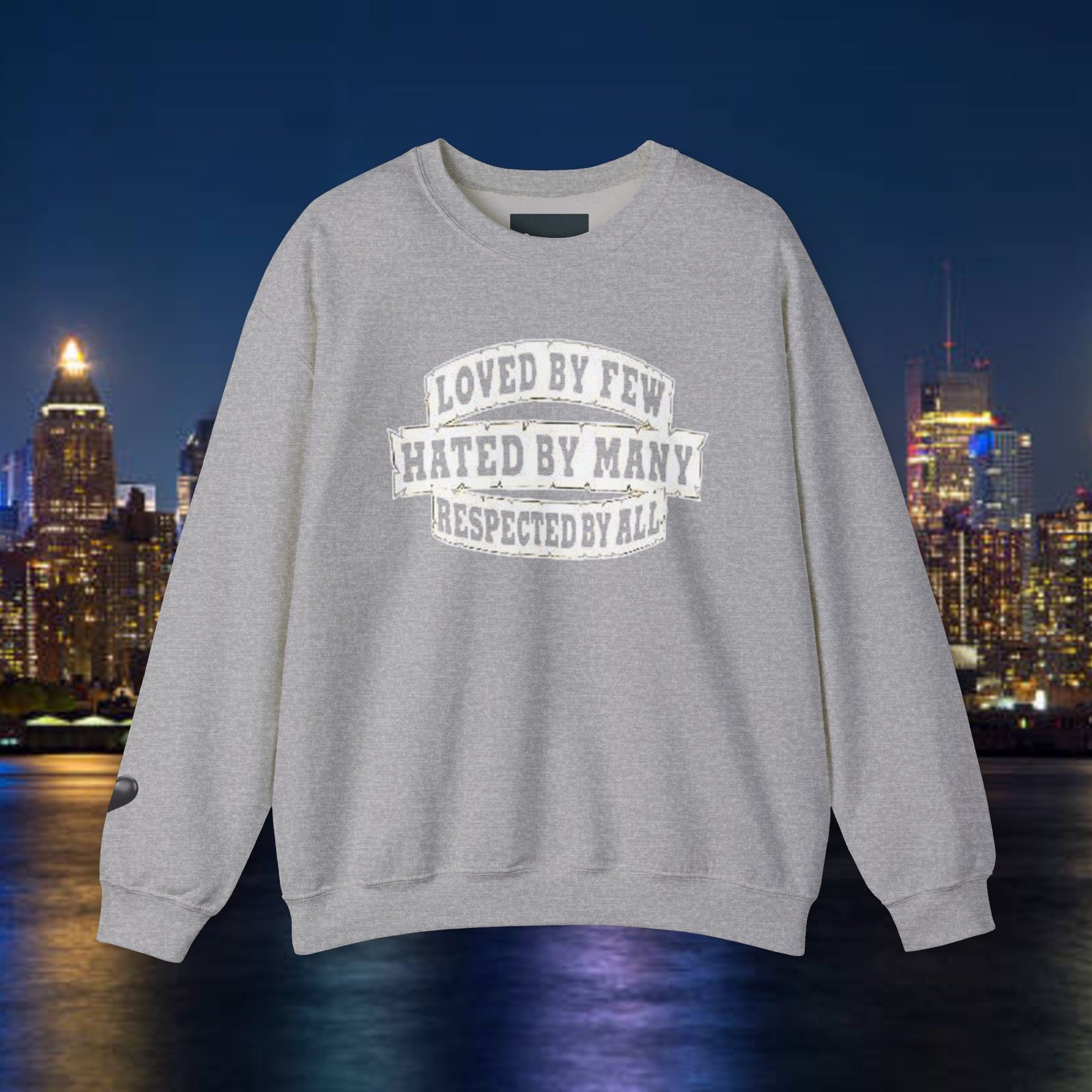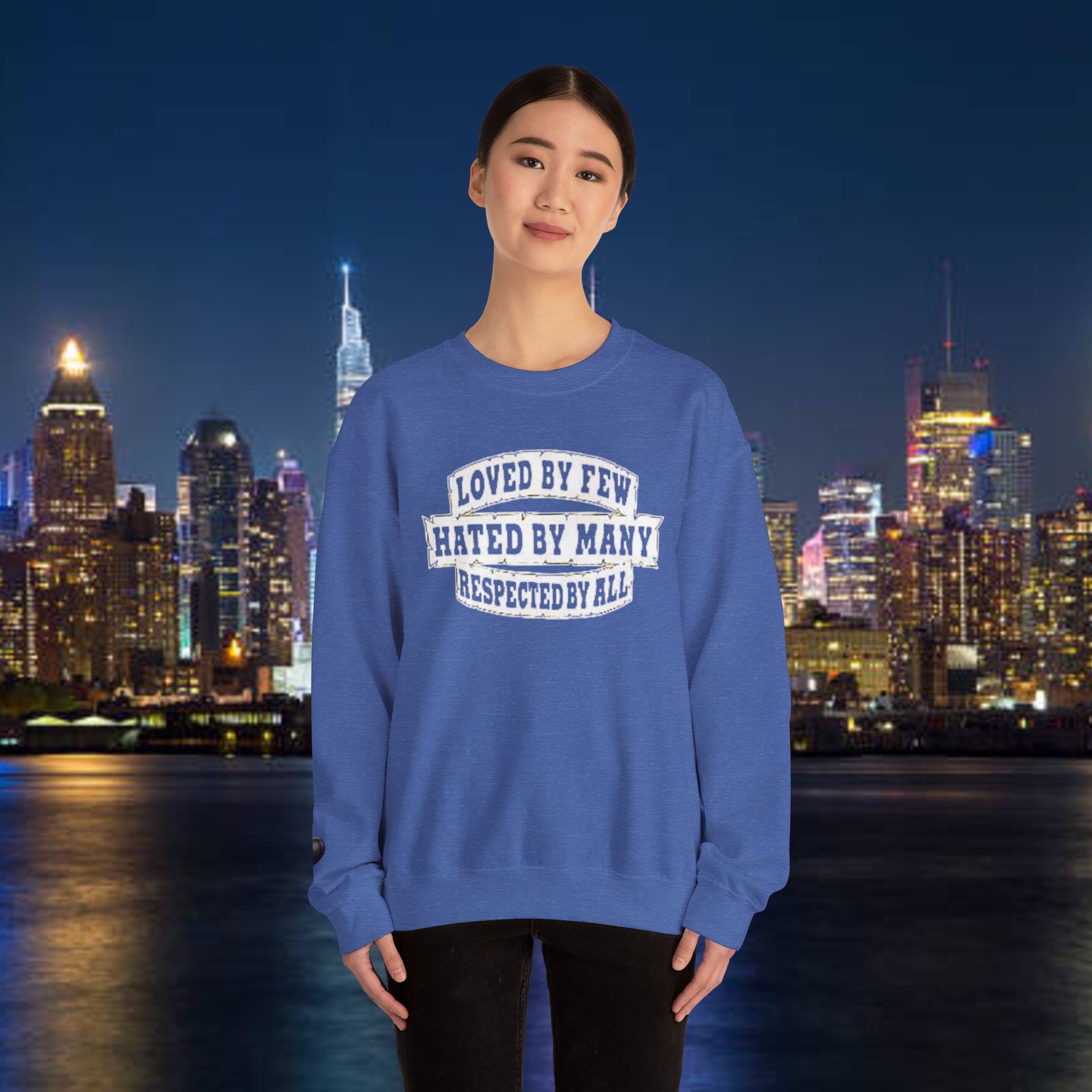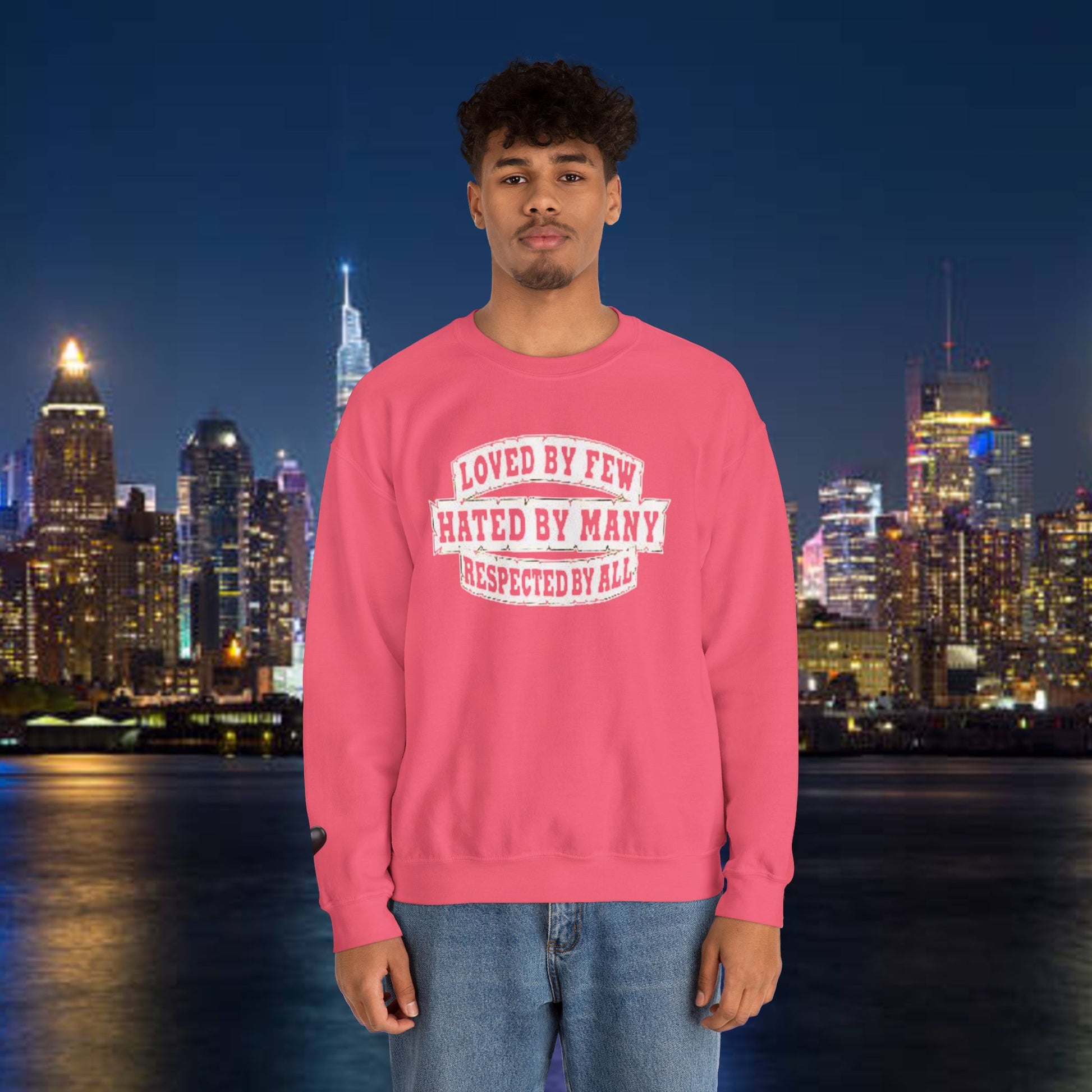 Designed for adults who value comfort and a classic aesthetic, this sweatshirt features a timeless crew neckline and a classic fit that complements all body types. Whether you're celebrating a cozy winter holiday, a casual birthday bash, or just unwinding on a chilly evening, this crewneck has got you covered. Its unique message, "Loved by Few, Hated by Many, Respected by All," adds a powerful statement to your everyday look, making it a fantastic gift for friends or family who embrace individuality.