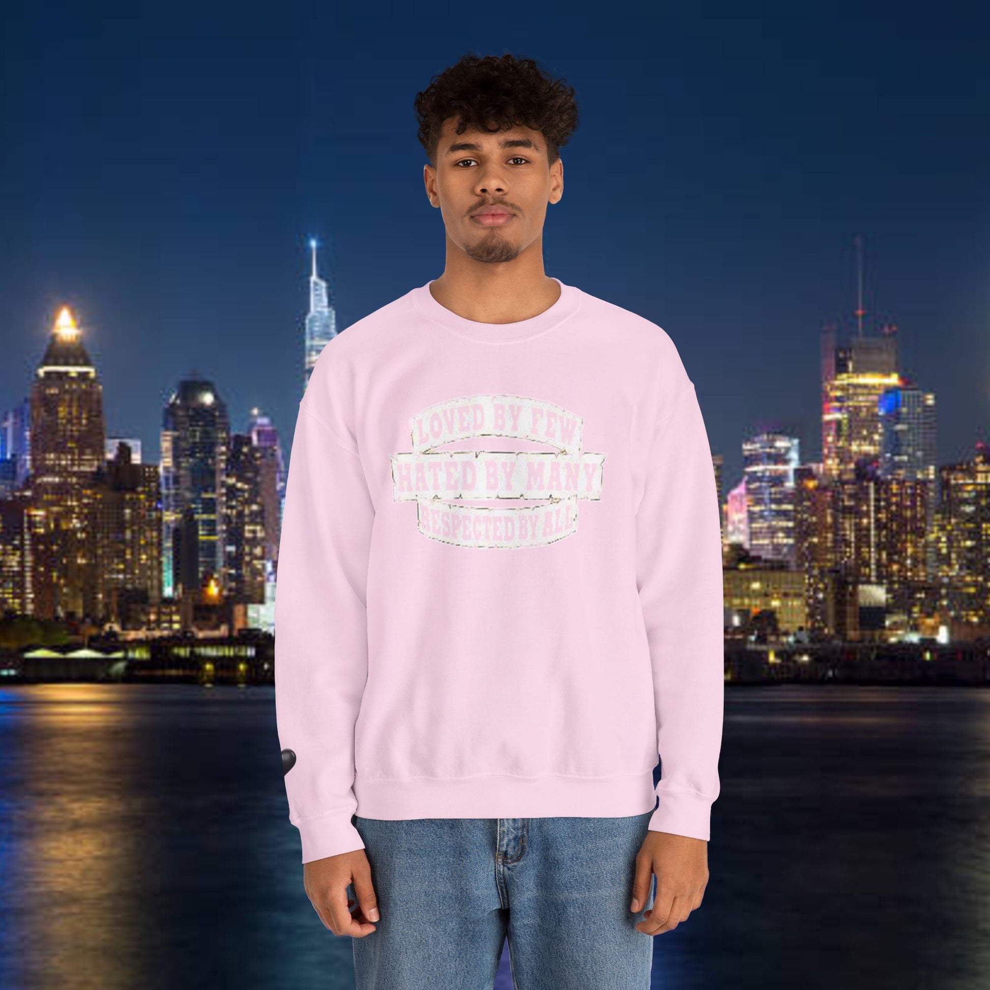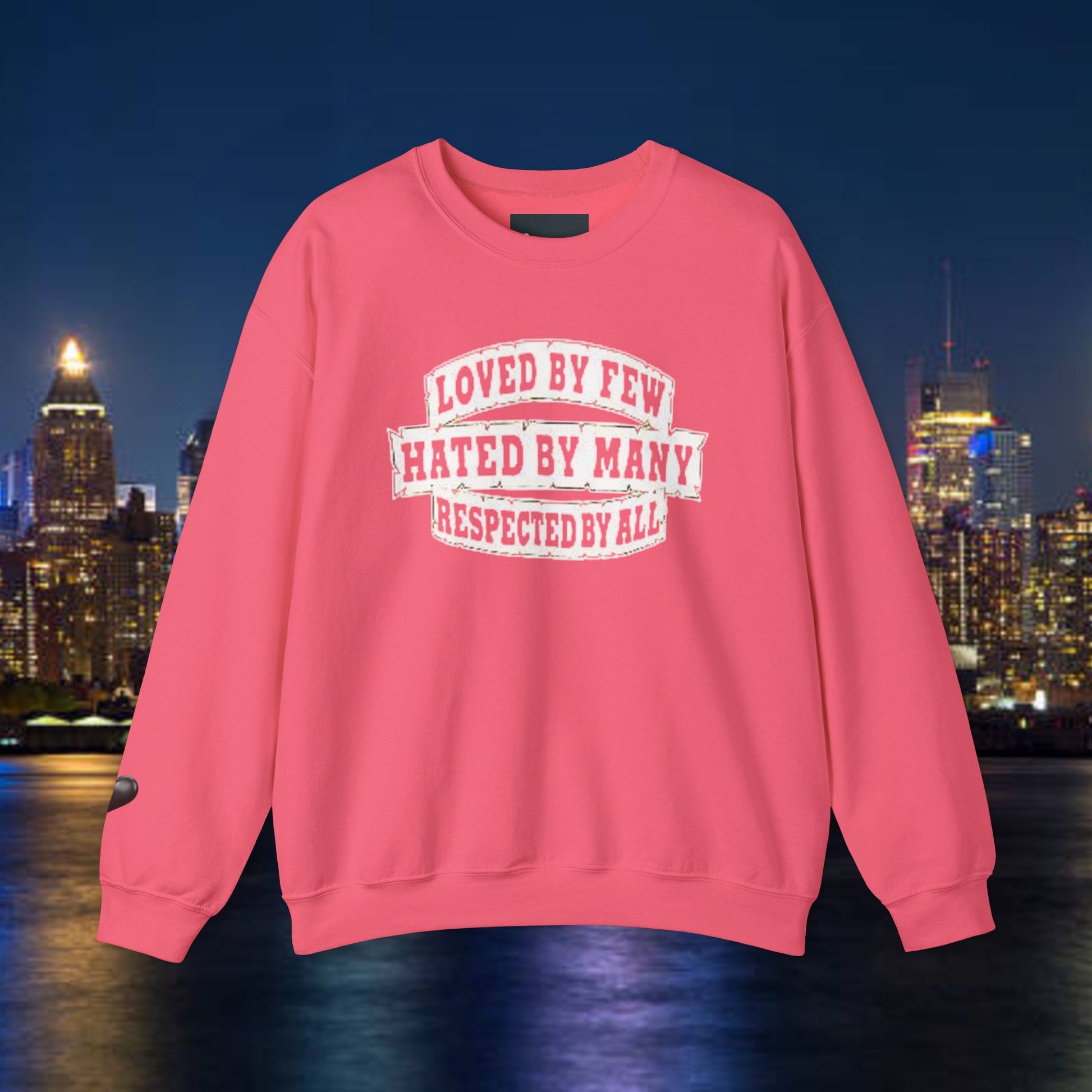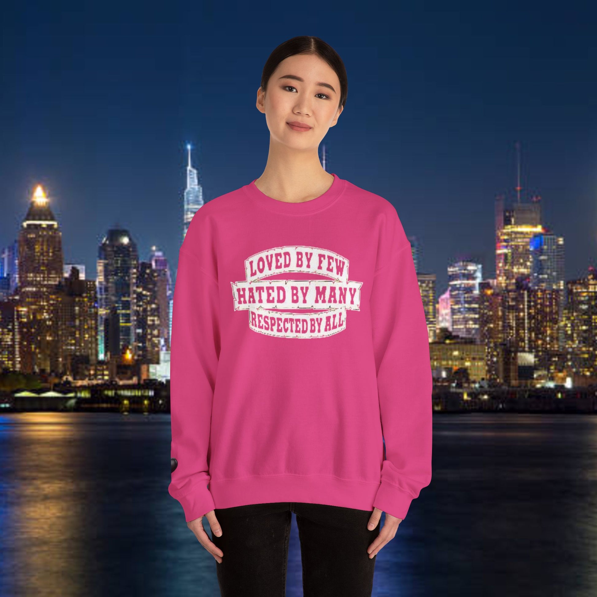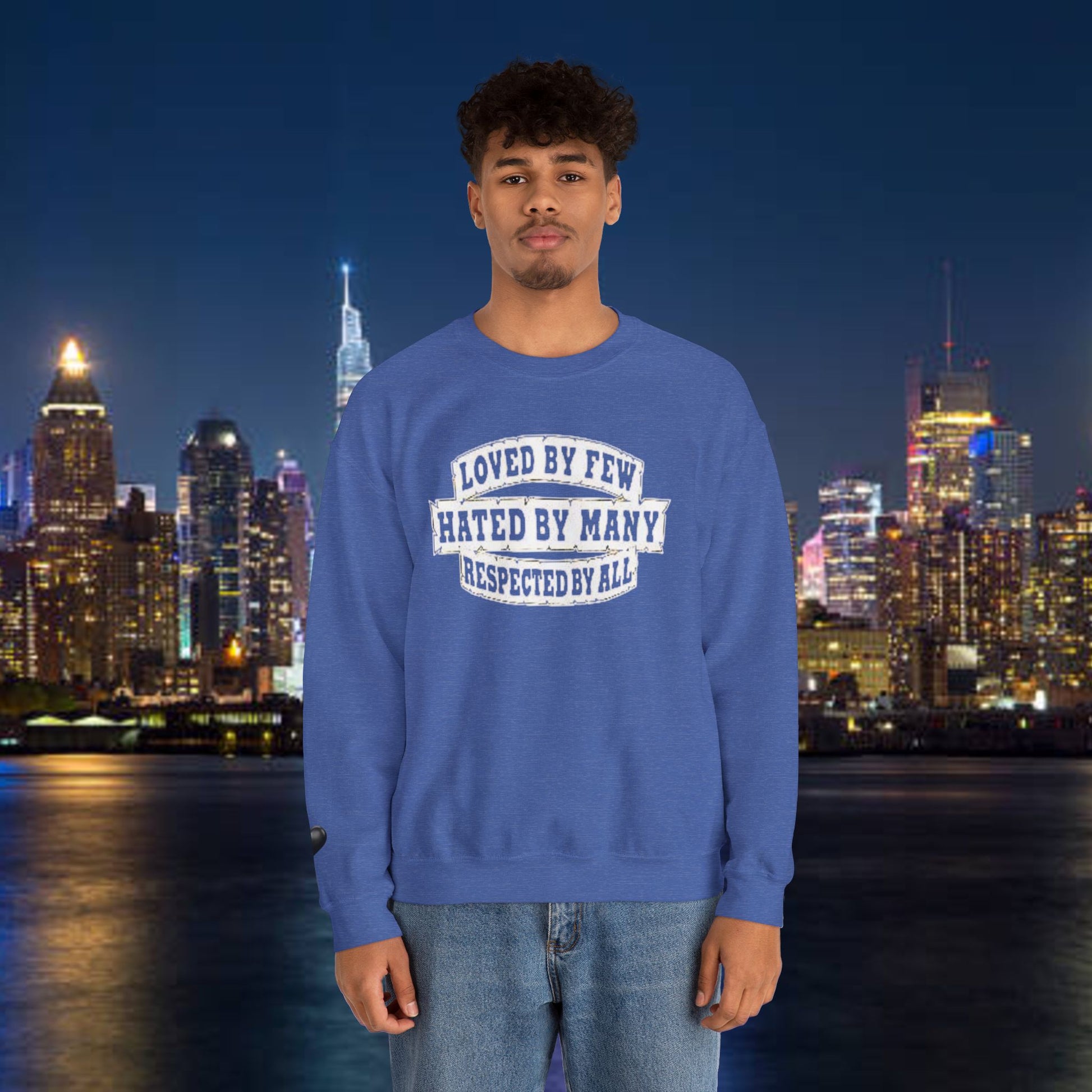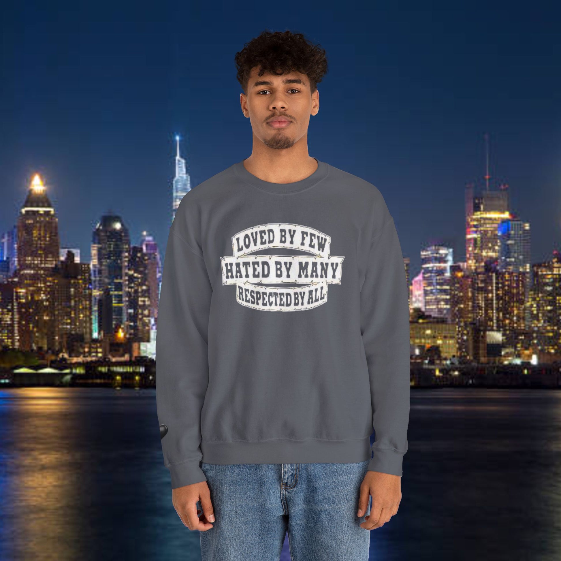 Designed for adults who value comfort and a classic aesthetic, this sweatshirt features a timeless crew neckline and a classic fit that complements all body types. Whether you're celebrating a cozy winter holiday, a casual birthday bash, or just unwinding on a chilly evening, this crewneck has got you covered. Its unique message, "Loved by Few, Hated by Many, Respected by All," adds a powerful statement to your everyday look, making it a fantastic gift for friends or family who embrace individuality.