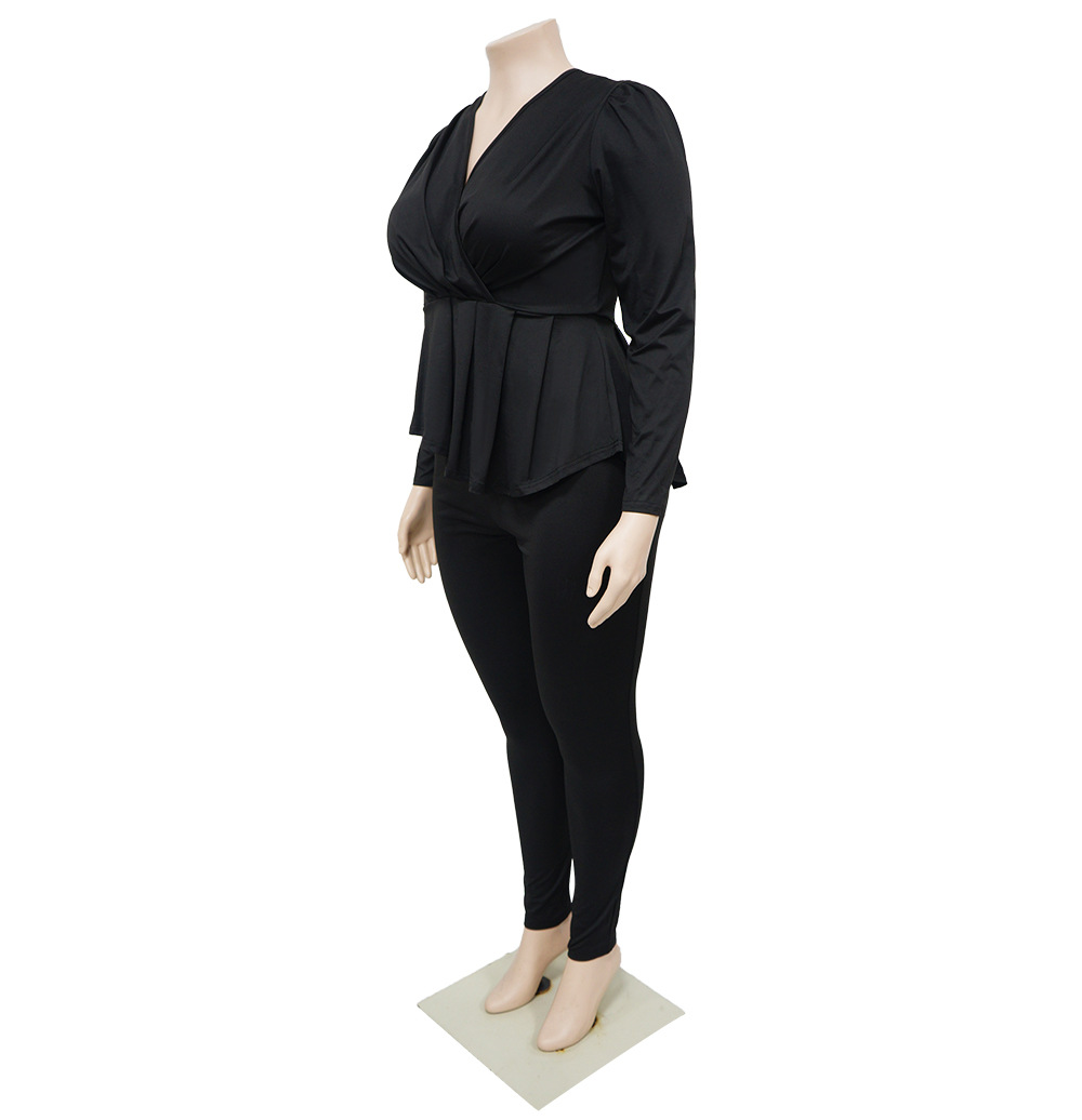 Plus Size Women's Deep V-neck Long Sleeve Pencil Pants Suit
