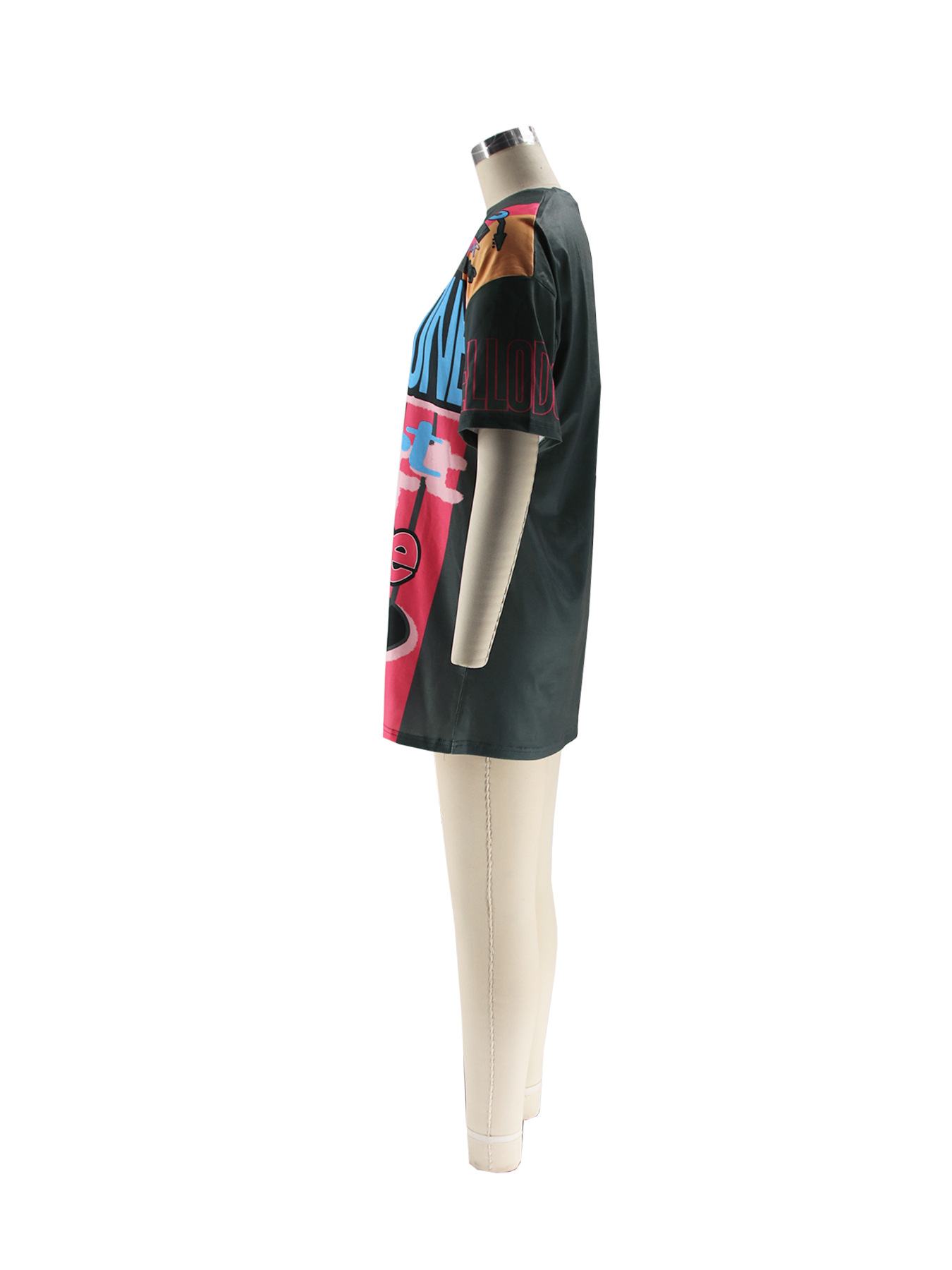 Round Neck Loose Multi-color Letters Street Fashion